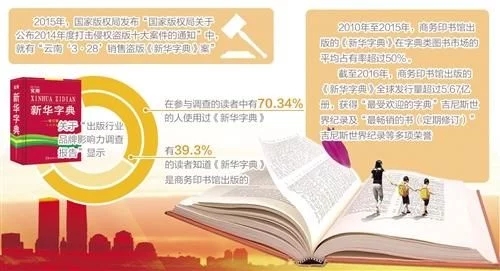 近年来,市面上出现了冠以“新华字典”字样的多种版本的图书。其实,早在1999年,有关部门就制定了对打击侵权盗版等违法活动的措施,指出“《新华字典》等是商务印书馆出版的重点工具书,这些图书在汉语言普及与研究,以及语言教学等方面发挥了重要作用,深受广大读者喜爱”。2015年,国家版权局发布“国家版权局关于公布2014年度打击侵权盗版十大案件的通知”中,就有“云南‘3·28’销售盗版《新华字典》案”。